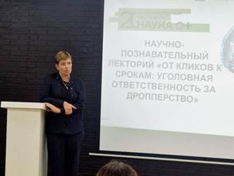 НАУЧНО-ОБРАЗОВАТЕЛЬНЫЙ ЛЕКТОРИЙ «ОТ КЛИКОВ К СРОКАМ: УГОЛОВНАЯ ОТВЕТСТВЕННОСТЬ ЗА ДРОППЕРСТВО» В РАМКАХ МЕЖДУНАРОДНОГО ФЕСТИВАЛЯ «НАУКА 0+»